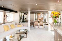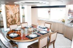 SOVEREIGN LADY is classified as a superyacht. The expansive aft deck, continues to the attractive and sleek main salon. The main saloon is a friendly space with an abundance of seating areas and offers a range of entertainment options. spacious cabins are thoughtfully spread out for maximum privacy and comfort.