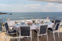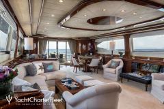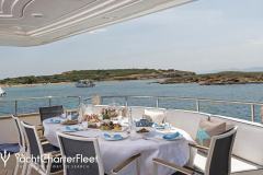 Introduced by DMA Yachting, the majestic charter yacht SUGAR is a 105 ft motor yacht featuring a jetski. The promiment features of SUGAR are her well-chosen interiors and fantastic layout. SUGAR spends the season in Corsica. She was completed by the renowned boatbuilder Versilcraft Versilcraft in 2001. A succesful refit was fulfilled in 2021. and easily accommodates a maximum of 9 guests.