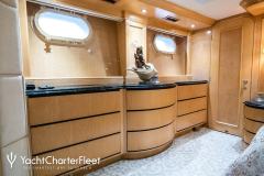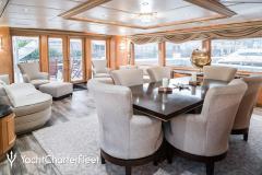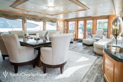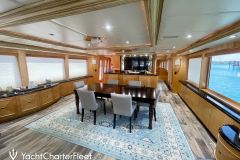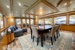THE DENISE ROSE is classified as a superyacht. The prominent section of the yacht, spacious aft deck, is right next to the attractive and sleek main salon. The main saloon is a gathering space that is well-equipped to shield from the elements in comfort and enjoyment and offers a range of entertainment options. welcoming cabins are purposefully laid out for maximum privacy and comfort.