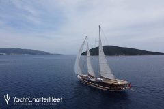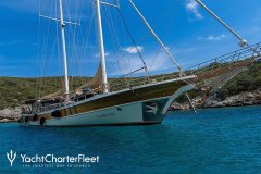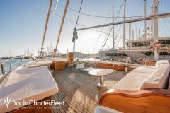 Presented by DMA Yachting, the majestic charter yacht TORINI is a 96 ft sailboat featuring a jetski. The most appealing features of TORINI are her well-chosen interiors and inviting socializing areas. TORINI spends the season in Corsica. She was completed by recognized shipbuilder Cek-Lift Cek-Lift in 2000. An elegant refit was completed in 2023. and comfortably accommodates a group of 12 guests.