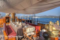 Offered by DMA Yachting, the impressive charter yacht TRINAKRIA is a 160 ft sailboat. The promiment features of TRINAKRIA are her well-chosen interiors and culinary experience. TRINAKRIA spends the season in Corsica. She was constructed by the famous yacht builder Weiner Werft in 1927. A well-done refit was delivered in 2014. and easily accommodates up to 10 guests.