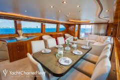 TWO SEAS is classified as a superyacht. The key part of the boat -spacious aft deck, continues to the attractive and sleek main salon. The main saloon is a gathering space for early mornings or late evenings and serves as a location of entertainment. spacious cabins are purposefully laid out with vison for maximum room, access, comfort and privacy.