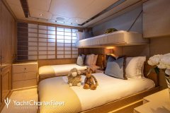 VA BENE is classified as a superyacht. The key part of the yacht, spacious aft deck, continues to the well-equipped and inviting main saloon. The main saloon is a comfortable space for early mornings or late evenings and enables a number of media entertainment options. spacious cabins are purposefully laid out for maximum privacy and comfort.