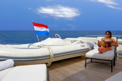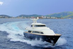 Presented by DMA Yachting, the majestic charter yacht VINTAGE is a 89 ft motor yacht. The most appealing features of VINTAGE are her generous space and fantastic layout. VINTAGE spends the season in Corsica. She was delivered by a custom yachtbuilder in 2001. A well-done refit was finalized in 2014. and comfortably accommodates a maximum of 8 guests.