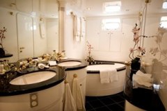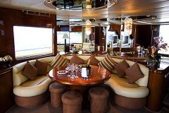VOGUE is classified as a superyacht. The key part of the boat -roomy aft deck, leads to the the heart of the yacht - the main saloon. The main saloon is a comfortable space with an abundance of seating areas and offers a range of entertainment options. elegant cabins are thoughtfully spread out for maximum privacy and comfort.