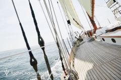 Introduced by DMA Yachting, the astonishing charter yacht WHEN AND IF is a 79 ft sailboat. The main attractions of WHEN AND IF are her absolute comfort and interconnection with the sea. WHEN AND IF spends the season in Corsica. She was constructed by the well-known ship builder Pendleton Pendleton in 1939. A comprehensive refit was fulfilled in 1992. and easily accommodates a maximum of 6 guests.