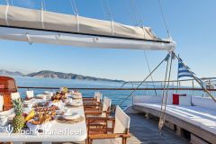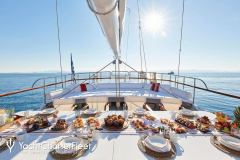 Introduced by DMA Yachting, the impressive charter yacht WHITE PEARL is a 111 ft sailboat featuring a jetski. The main attractions of WHITE PEARL are her elegant profile and experienced crew. WHITE PEARL spends the season in Corsica. She was completed by a custom yachtbuilder in 1997. A succesful refit was finalized in 2024. and easily accommodates up to 12 guests.