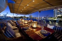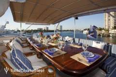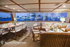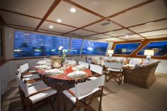 WILD DAWN is classified as a superyacht. The key part of the boat -generous aft deck, is right next to the meticulously composed main saloon. The main saloon is a comfortable space with comfortable seating and entertainment areas and boasts a number of entertainment options. welcoming cabins are laid out with vison for maximum room, access, comfort and privacy.