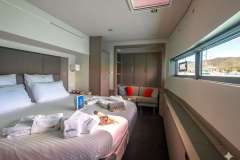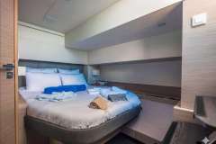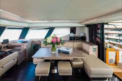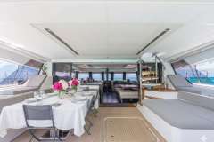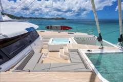 ADEONA is offered primarily as a sailing catamaran. The yacht layout radiates from the main saloon, which connects to the aft deck. The aft deck is expansive, with a comfortable dining and seating area and usually it is where you, as a charter guest, spend most of your time. The immersive cabins are located in the 2 massive hulls. The cabins offer designer mattrace beds and feature ensuite bathrooms. Multiple portholes provide a connection with the natural world outside.