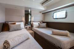 1 Twin, 2 single beds 185 x 90. This is a convertible cabin: on demand can be converted (double bed 210x190)