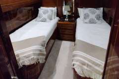 The sailboat features Engines: MAN2842 LE409 1103 kw / 1450hp x 2 Generator: Kohler 17kw frozen x2 Cruising speed 32knts @300Litres/hr engines .