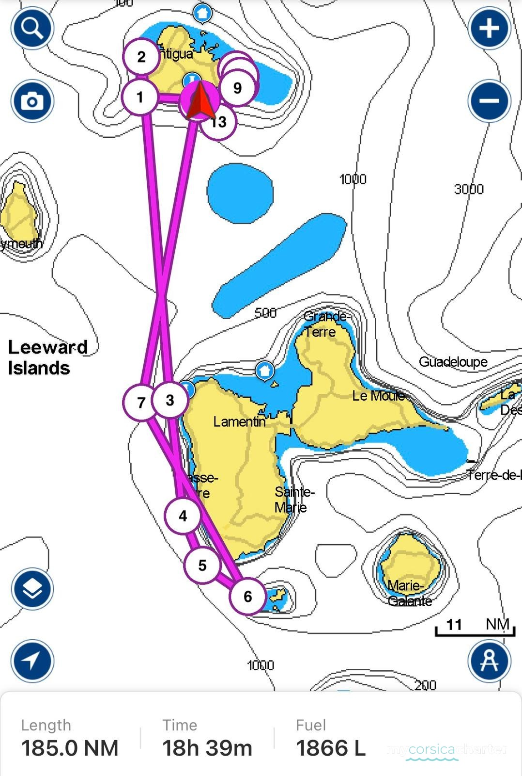 The expenses, such as provisioning, fuel, marina fees, are deducted from the APA. The APA is based on the price of the yacht and ranges from 15% (crewed sailing yachts) to 30% (motor yachts with higher fuel consumption).