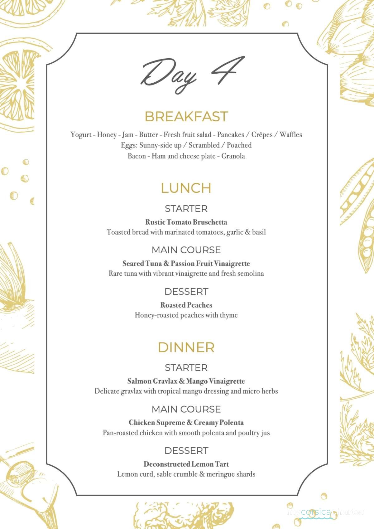 Warm, professional, and discreet, he is fully committed to enhancing the onboard experience with exceptional culinary artistry. Whether you're hosting a celebratory cruise or a quiet week at sea, Chef Jeremy ensures every meal is a memorable highlight of your charter.