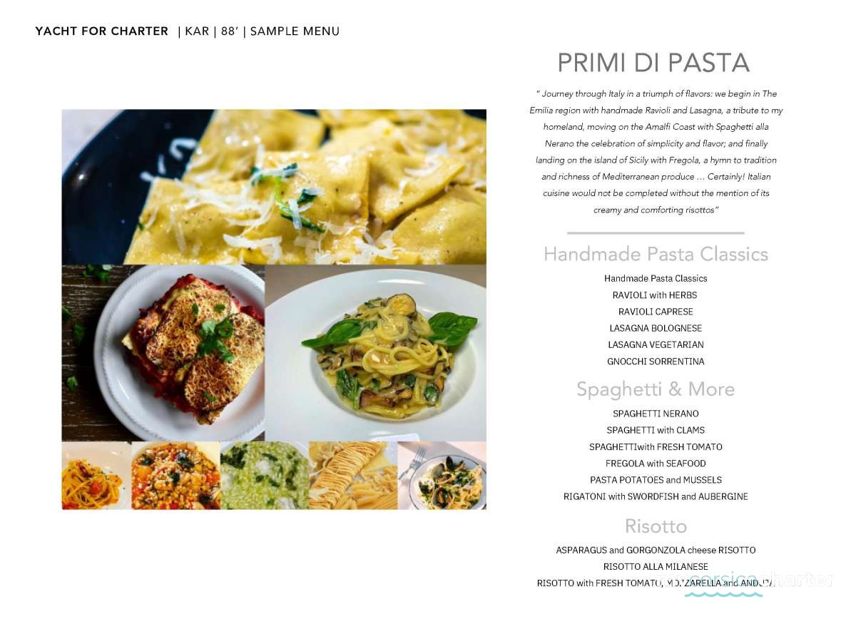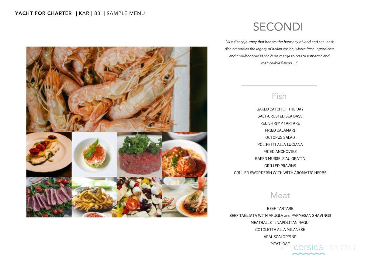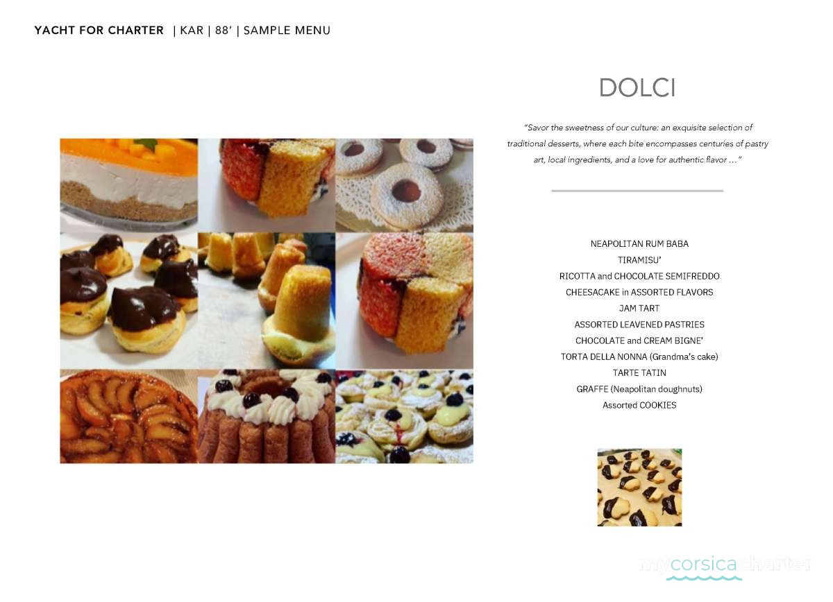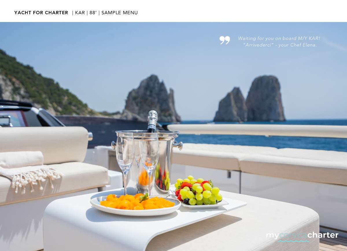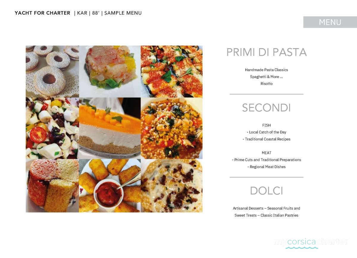 For a motor yacht like KAR, the expected APA is 25% to 40% of the charter price (€16,250 - €26,000), making the charter cost €81,250 to €91,000. Exact amount will be confirmed after inquiry.