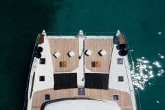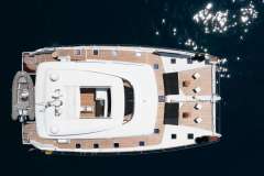 LA FREGATE is introduced primarily as a power catamaran. The central space of the yacht is the main saloon, which connects to the aft deck. The aft deck is where heart of the yacht is and that's where the guests spend most of their time. The tasteful cabins offer unbeatable views in the morning and are located just below deck. The cabins offer designer mattrace beds and feature ensuite bathrooms. Multiple portholes connect you with the outside world.