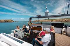 Quite simply for the incredible space, comfort and stability it offers, and for its incredibly low fuel consumption thanks to its three slim hulls and two additional electric engines, allowing you to arrive silently at idyllic anchorages.