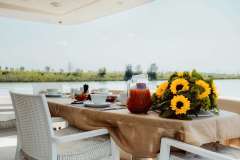 The bow features a generous sunbathing area measuring approximately 3.5 x 2 metres, providing the perfect spot for long hours of sunbathing with a panoramic view.