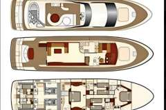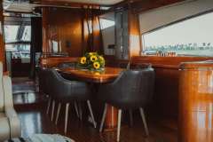 The yacht impresses at first glance with stylish details such as underwater lighting and an extended hydraulic bathing platform, which provides particularly comfortable access to the water. New exterior upholstery enhances the yacht's fresh, high-quality appearance. The main deck features elegant wooden flooring to create a warm and exclusive atmosphere, and wide side passages allow for safe and comfortable movement on deck. An additional toilet on the main deck increases guest comfort.