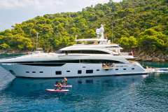 MIRAGE IV is classified as a superyacht. The prominent section of the yacht, expansive aft deck, is right next to the the heart of the yacht - the main saloon. The main saloon is a well-design space that is well-equipped to shield from the elements in comfort and enjoyment and enables a number of media entertainment options. 6 elegant cabins are purposefully laid out to allow for comfortable access and private setting.
