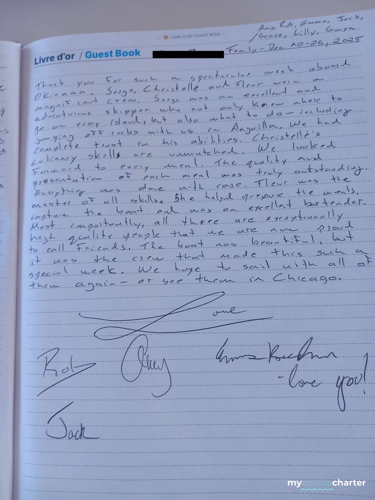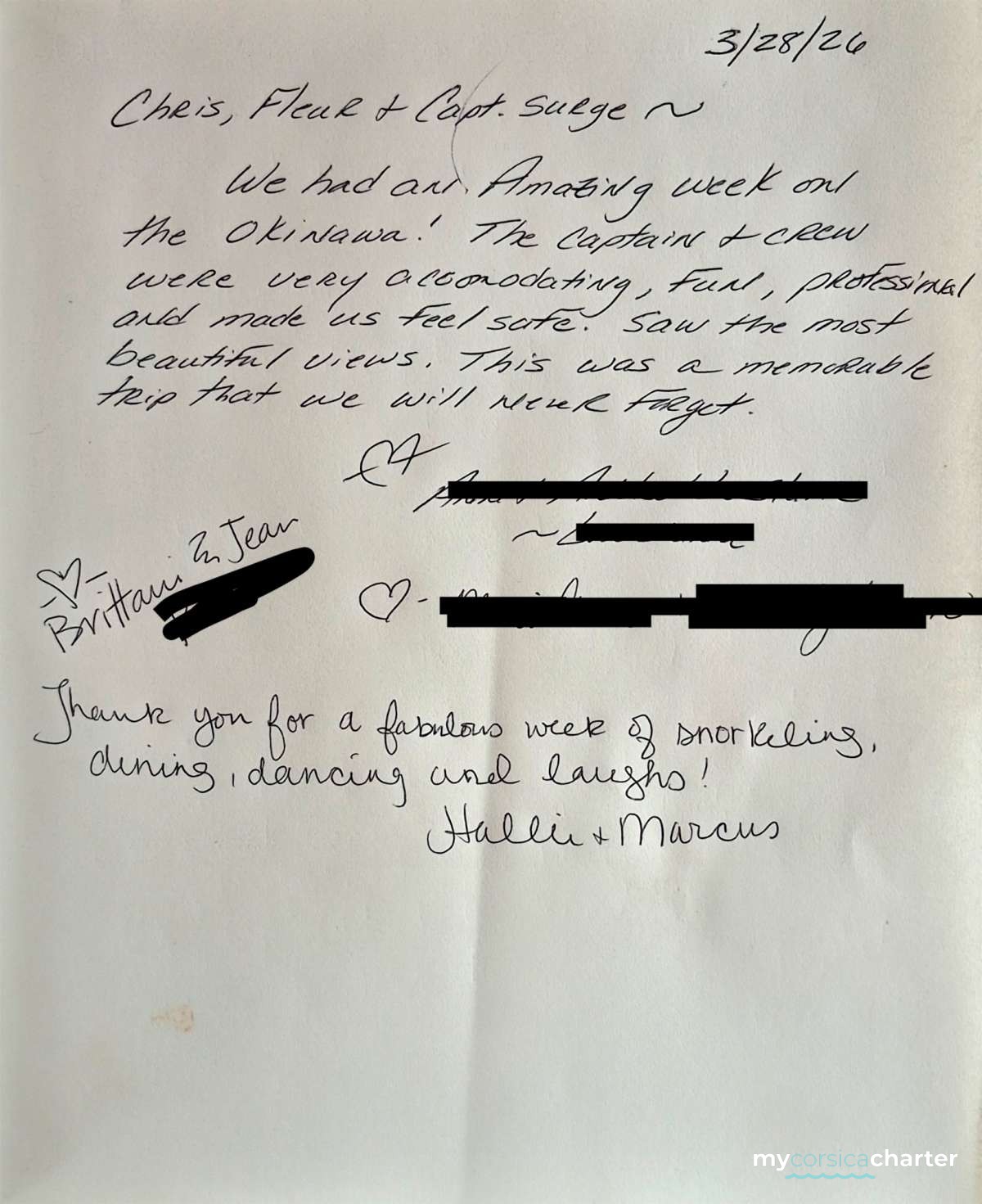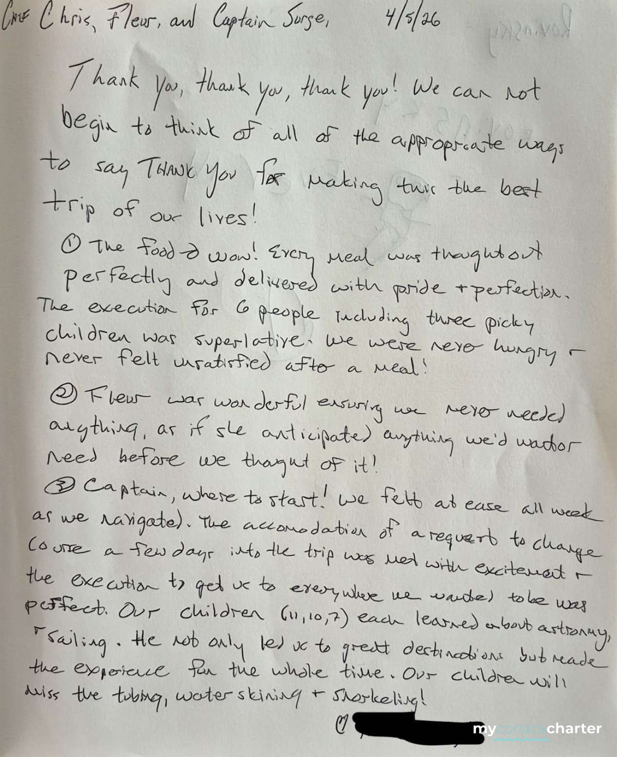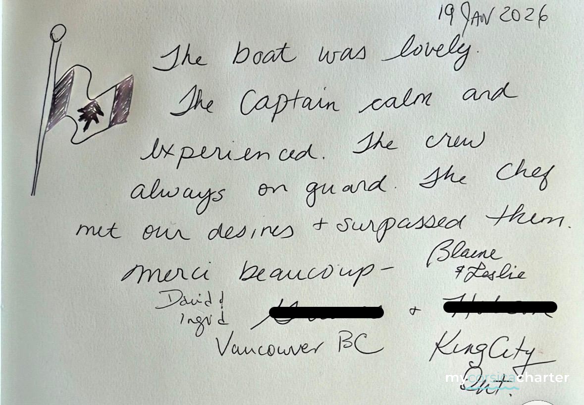 In any case, the crew did an excellent job, demonstrating great availability, especially considering the presence of two very young children on board, with special needs (bottle feeding, special lunches and dinners for the two-year-old, etc.).