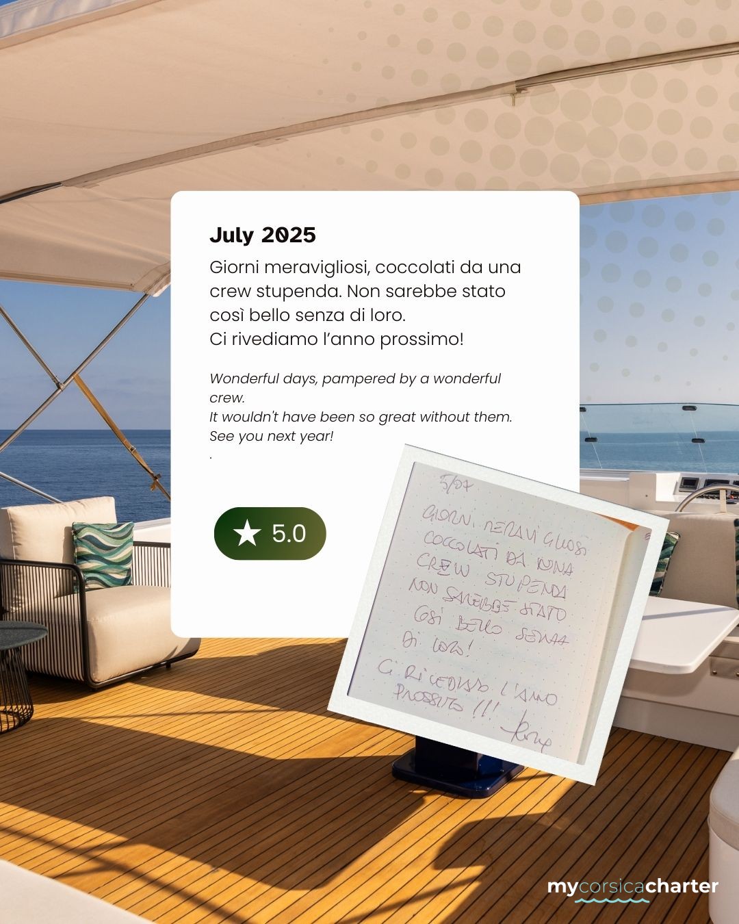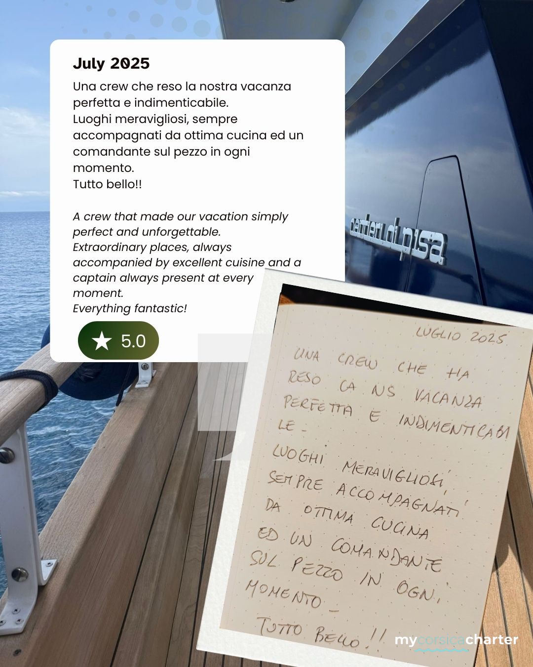 Ready for all our needs and expectations. Enrico is a fantastic chef! We had the opportunity to sail with him before and he is still the best! Very many thanks for the time we spent together and all the perfect time you gave to us!