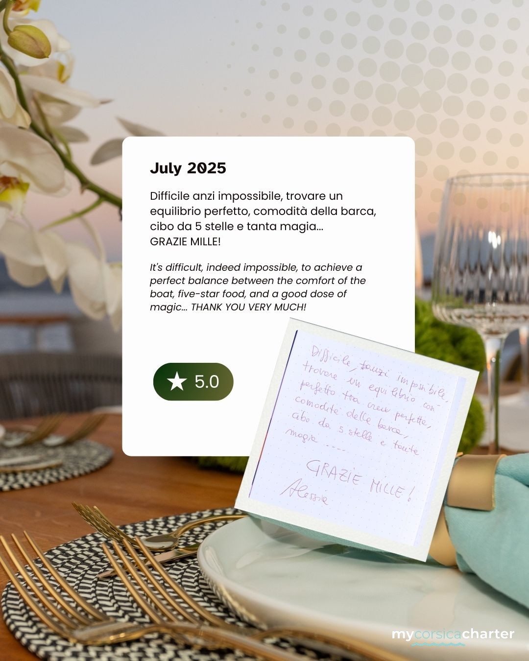 It's difficult, indeed impossible, to achieve a perfect balance between the comfort of the boat, five-star food, and a good dose of magic... THANK YOU VERY MUCH!