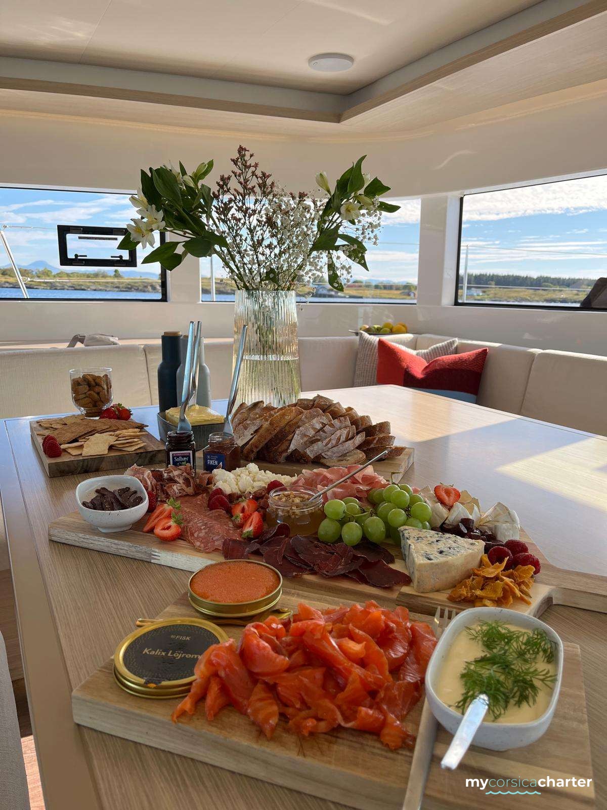 For a sailing catamaran like OYA, the expected APA is 20% to 35% of the charter price (€8,400 - €14,700), making the charter cost €50,400 to €56,700. Exact amount will be confirmed after inquiry.