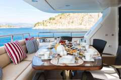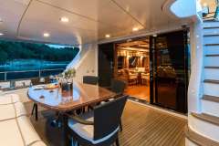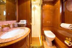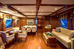 REBECCA V is classified as a superyacht. The prominent section of the yacht, spacious aft deck, is right next to the the heart of the yacht - the main saloon. The main saloon is a comfortable space with an abundance of seating areas and enables a number of media entertainment options. 4 elegant cabins are purposefully laid out with vison for maximum room, access, comfort and privacy.