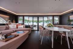 Introduced by DMA Yachting, the astonishing charter yacht SIETE MARES is a 78 ft power catamaran. The most attractive features of SIETE MARES are her generous space and interconnection with the sea. SIETE MARES spends the winter season in Corsica. She was constructed by the renowned boatbuilder Lagoon in 2025. The well-planned yacht layout features 4 cozy cabins and comfortably accommodates up to 8 guests.