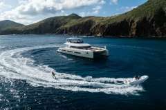Siete Mares will accommodate 8 charter guests in 4 staterooms that offer the option for differing cabin arrangements if needed. She is a 2025 motor catamaran with a Williams 110 HP, 15 foot, 8 passenger tender, hardwood decking, hydraulic lift, state of the art water treatment system, luxury staterooms with in suite televisions and stereo systems, galley down with full wet bar in the salon, interior and exterior dining options, interior lounge with a 55 inch retractable flat screen television, exquisitely customizable menu, eco-friendly and reef safe toiletries, bar stocked to guest preference, 1 two-person kayak, water skis, wakeboard, 4 stand up paddle boards convertible to a windsurfer, 8 underwater scooters, deep sea fishing equipment, snorkeling gear, floating dock, rendezvous scuba diving, yoga mats, exercise bands, dumbbells, board and card games and Siete Mares giveaways.