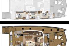 SIETE MARES is presented primarily as a power catamaran. The yacht layout radiates from the main saloon, which connects to the aft deck. The aft deck is expansive, with a comfortable dining and seating area and that's where the guests spend most of their time. The modern cabins are located below the main saloon, connected by stairs (inquire about handicapped access). The cabins are connected by stairs to the main saloon - roomy, comfortable and pleasant. Multiple portholes connect you with the outside world.