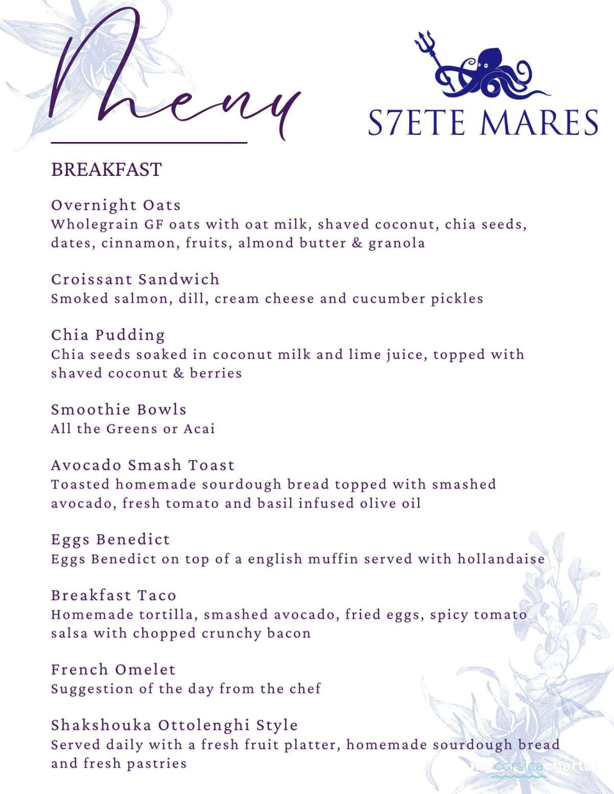 Inclusive charters are crewed charters with minimum or no additional charges. Provisioning, fuel and crew are included in the price. Additional fees may include diving, premium alcohol, local taxes, or onshore activities. These vary from yacht to yacht, please inquire.SIETE MARES Yacht Charter Price
