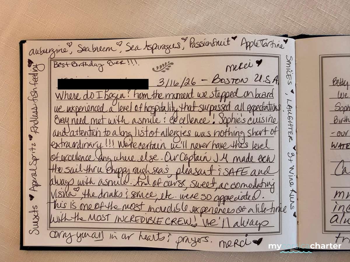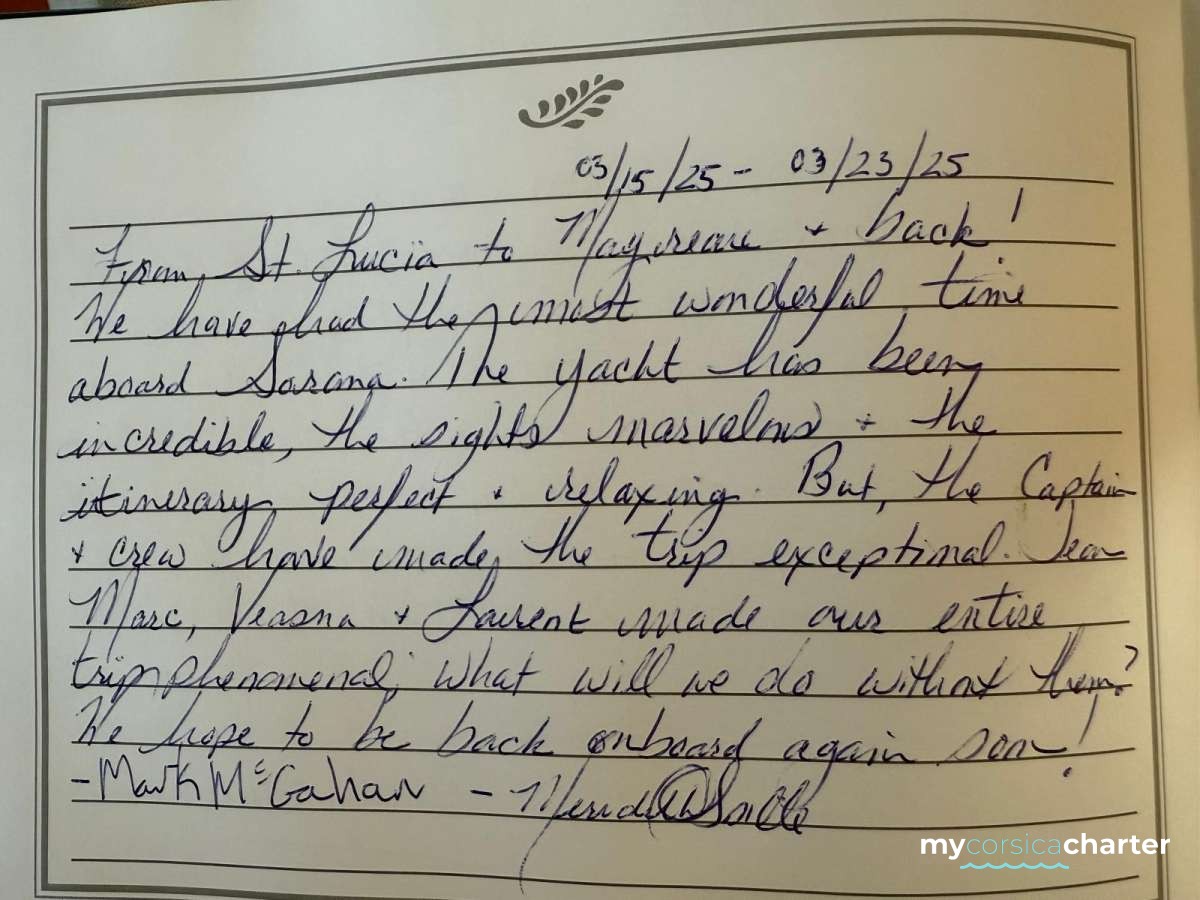 Where do I begin? From the moment we stepped onboard we experienced a level of hospitality that surpassed all expectations. Every need met with a smile & excellence! Sophie’s cuisine and attention to a long list of allergies was nothing short of extraordinary!!! We’re certain we’ll never have this level of excellence anywhere else. Our Captain J.M. made even the sail thru choppy seas pleasant & SAFE and always with a smile. Full of course, sweet, accommodating Veasna ❤️, the drinks & service, etc. were so appreciated. This is one of the most incredible experiences of a life-time with the MOST INCREDIBLE CREW! We’ll always carry you in our hearts & prayers. Merci ❤️
