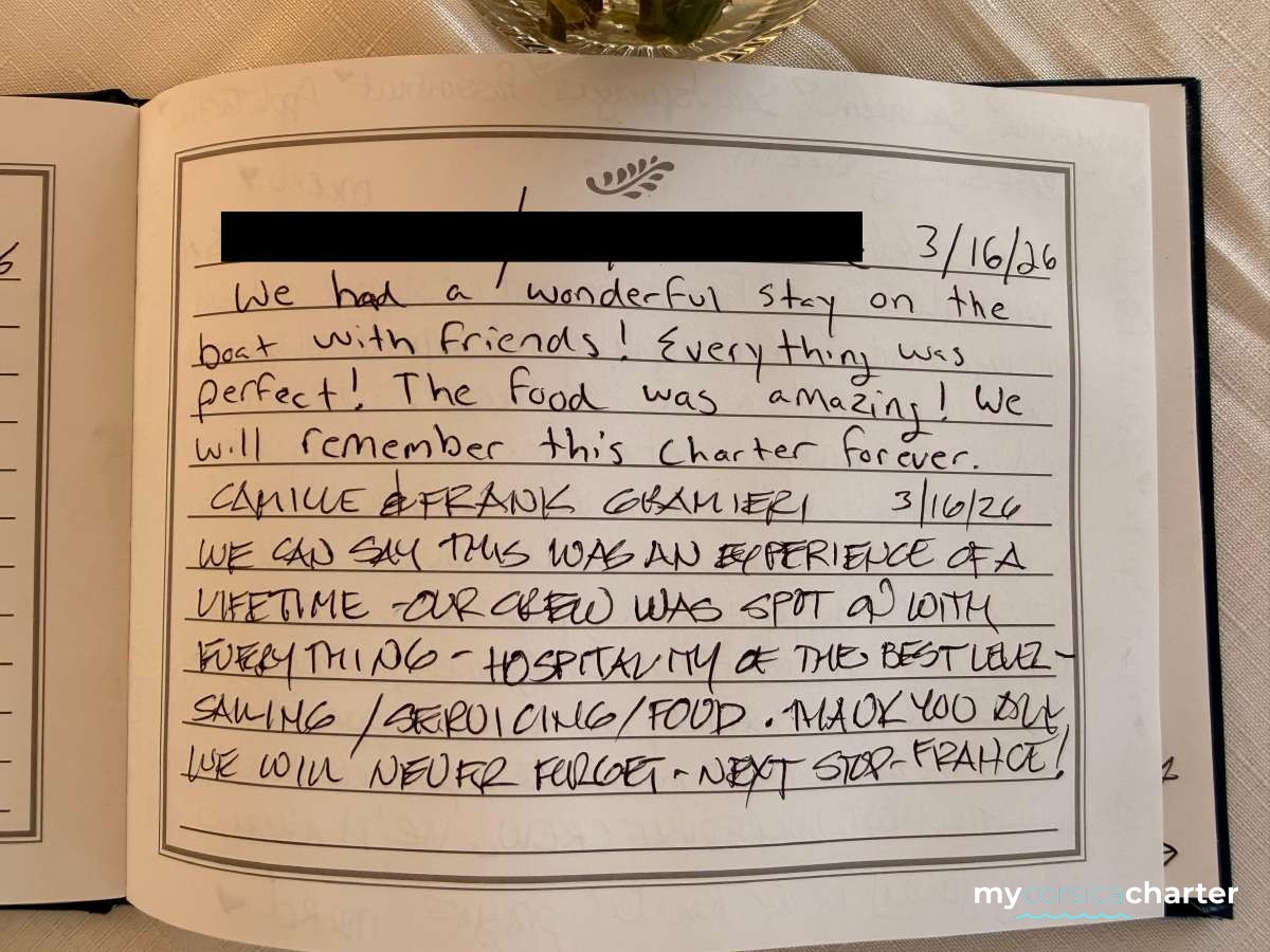 We can say this was an experience of a lifetime – our crew was spot on with everything – Hospitality at the best level – sailing / servicing / food. THANK YOU ALL ! WE WILL NEVER FORGET – NEXT STOP – FRANCE!