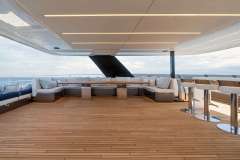 The motor yacht features 36kWp Solar panels Equipped with 2dx480kW engines A set of 990kWh batteries TESNI needs to run the generators for about 3 hours per day to charge the batteries when at anchor. While sailing, she can operate in Eco Mode for approximately 3 to 4 hours at 6 knots, provided the batteries are fully charged beforehand, meaning she can sail without the generator on. The maximum speed she can reach is 9 knots, but this requires the generator to be running. engines and a generator.