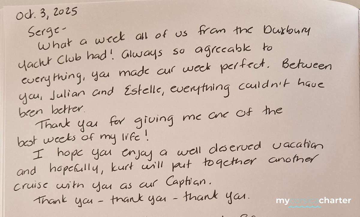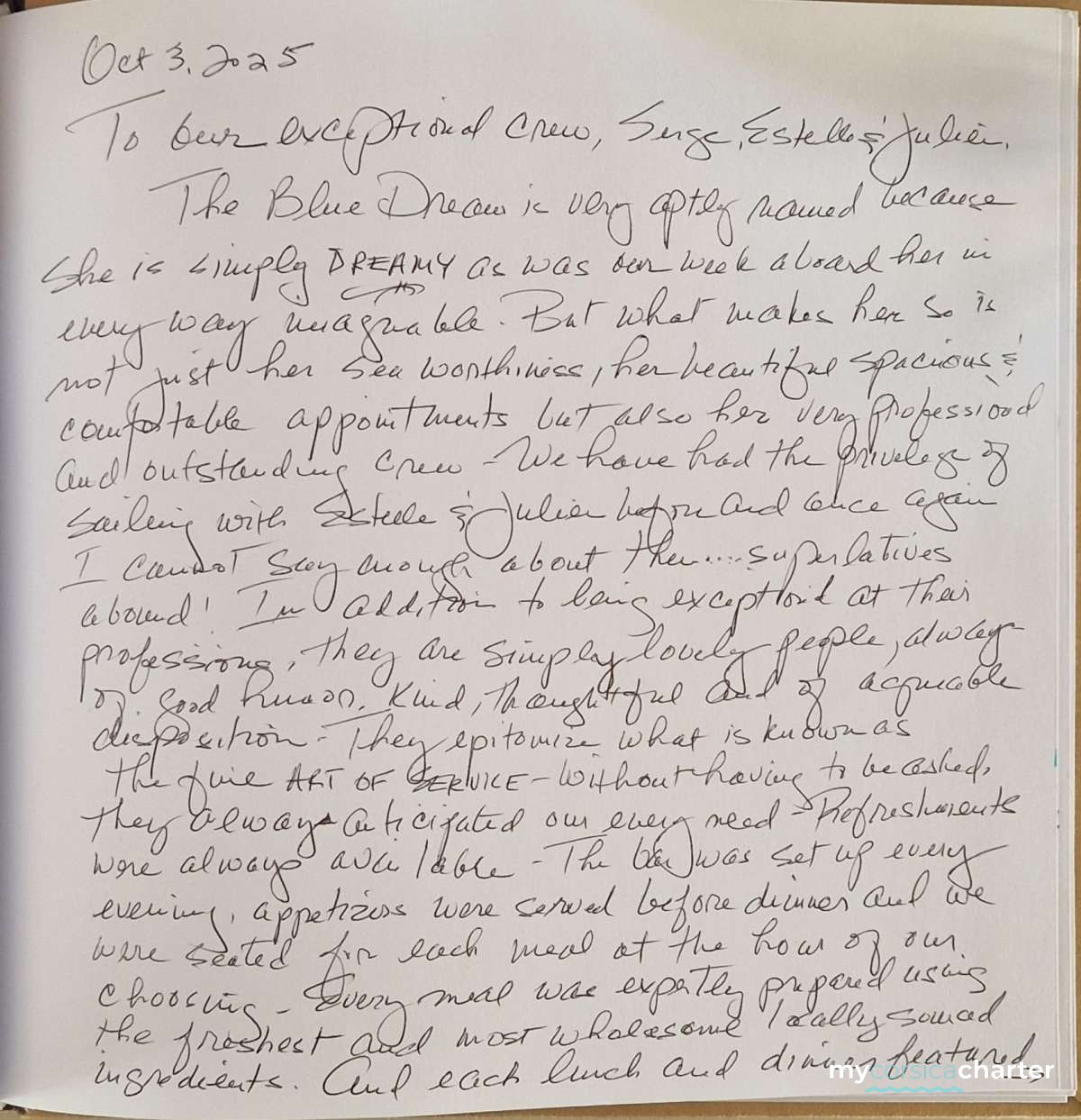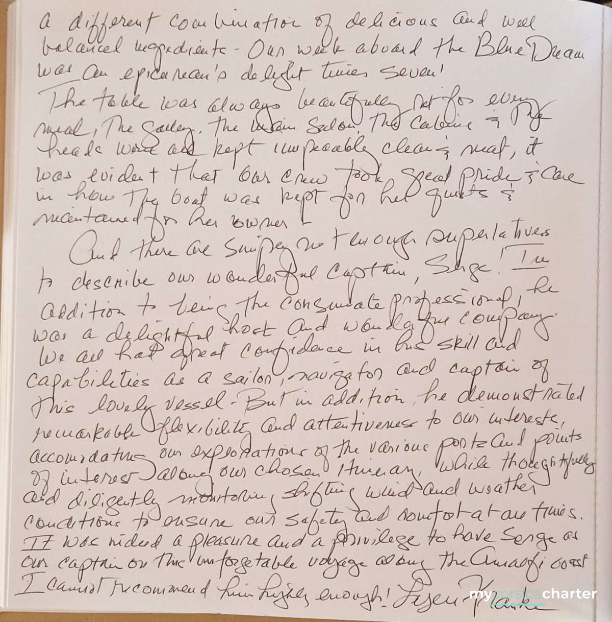 It is with great pleasure that my crew and I will accompany you throughout your cruise on "The Blue Dream".
