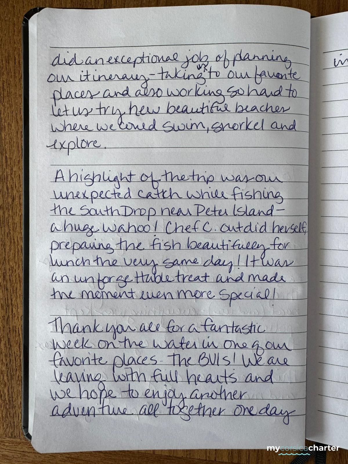A highlight of the trip was our unexpected catch while fishing the South Drop near Peter Island – a huge Wahoo! Chef C. outdid herself preparing the fish beautifully for lunch the very same day! It was an unforgettable treat and made the moment even more special!