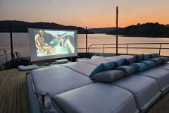 Additional onboard amenities include an open-air cinema and generous lounge areas, complemented by a dedicated crew of six who deliver discreet, professional service throughout the charter.